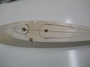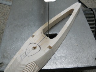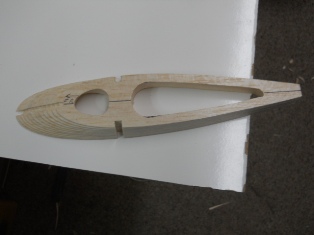 Foto 26 y 27 - Después de terminar con los cortes para los largueros, con cuidado sacamos las plantillas de terciada, nos aseguramos que estén en orden, con unas tiras de cinta de enmascarar las envolvemos y marcamos los cortes internos para alivianar las costillas.