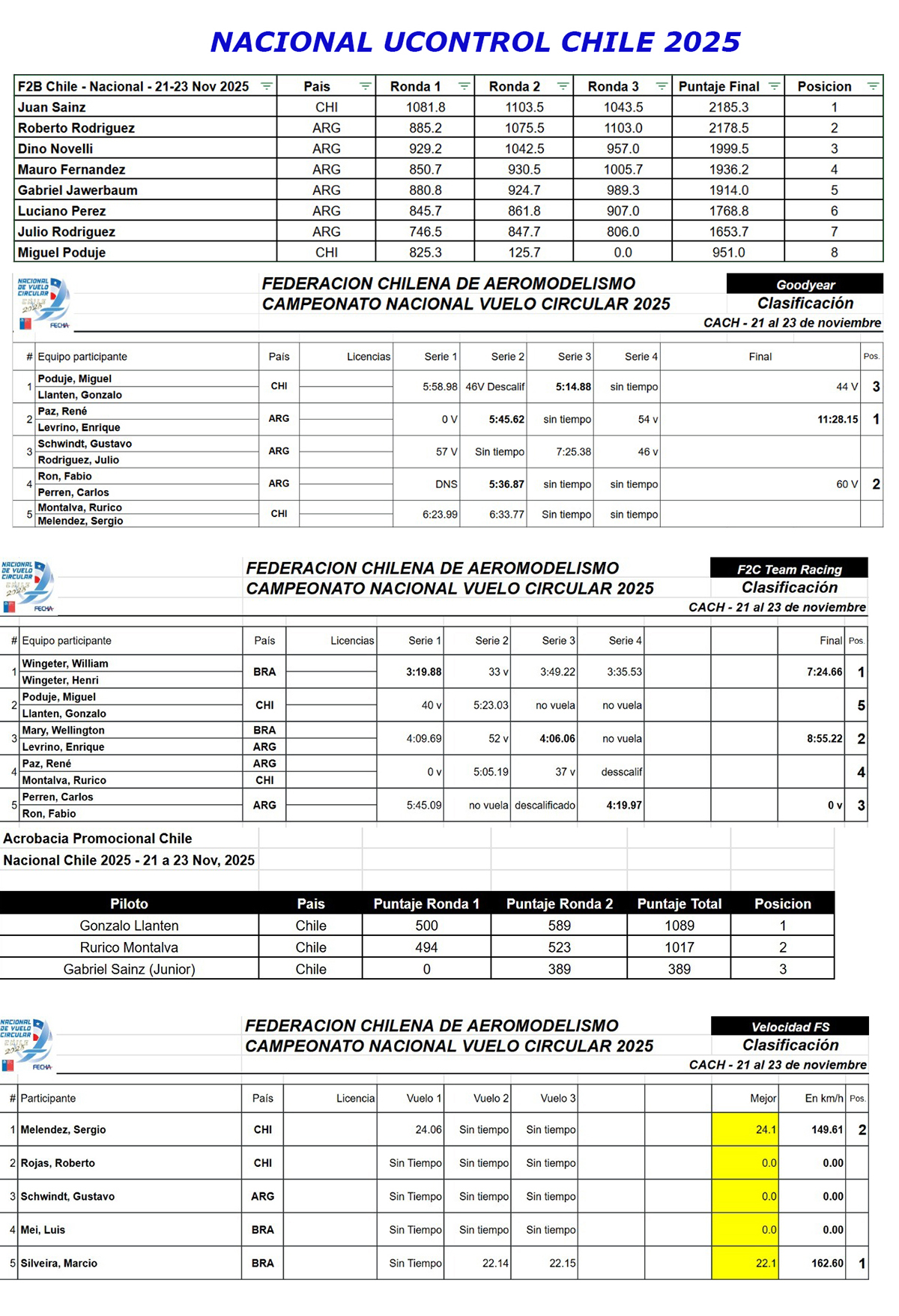 70º Campeonato Nacional - Club Aeromodelista Combatientes de Malvinas- Ver libro Excel con los resultados