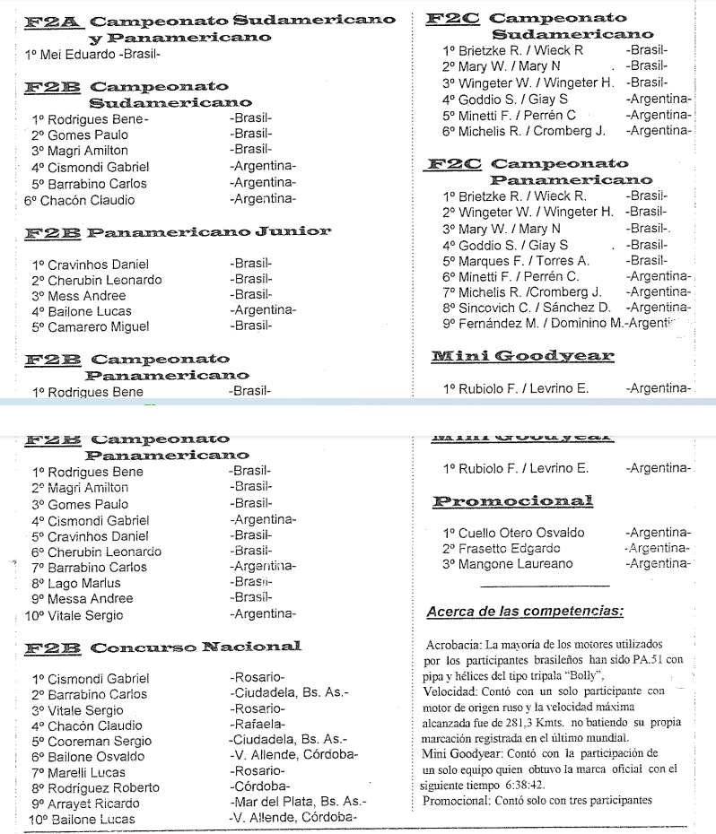 Campeonato Mundial Resultados F2C - Muncie (USA) - 4 al 11 de Julio