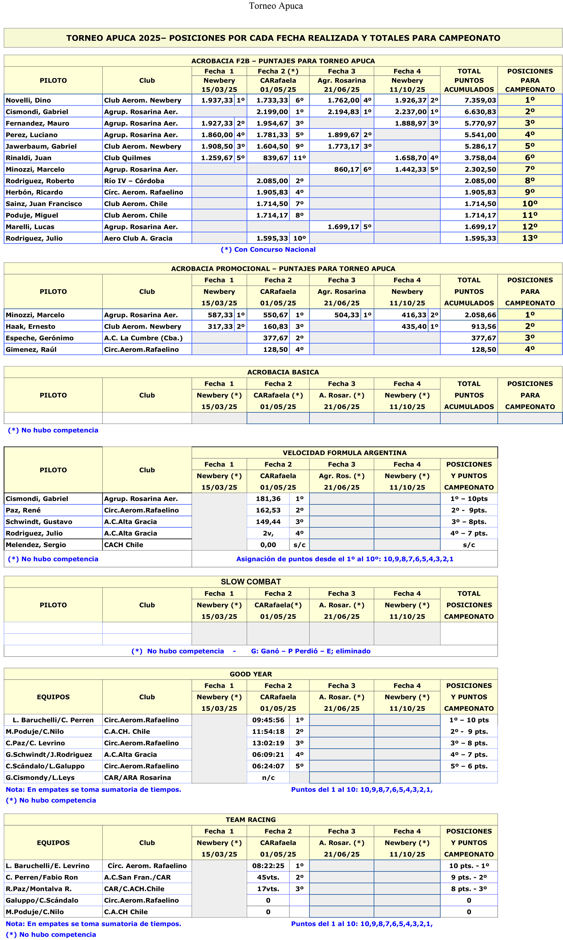 TORNEO APUCA 2025 - RESULTADOS POR FECHA Y TOTALES